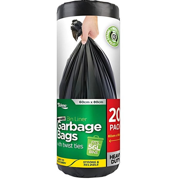 GARBAGE BAGS W/TIES 56L X 20PC